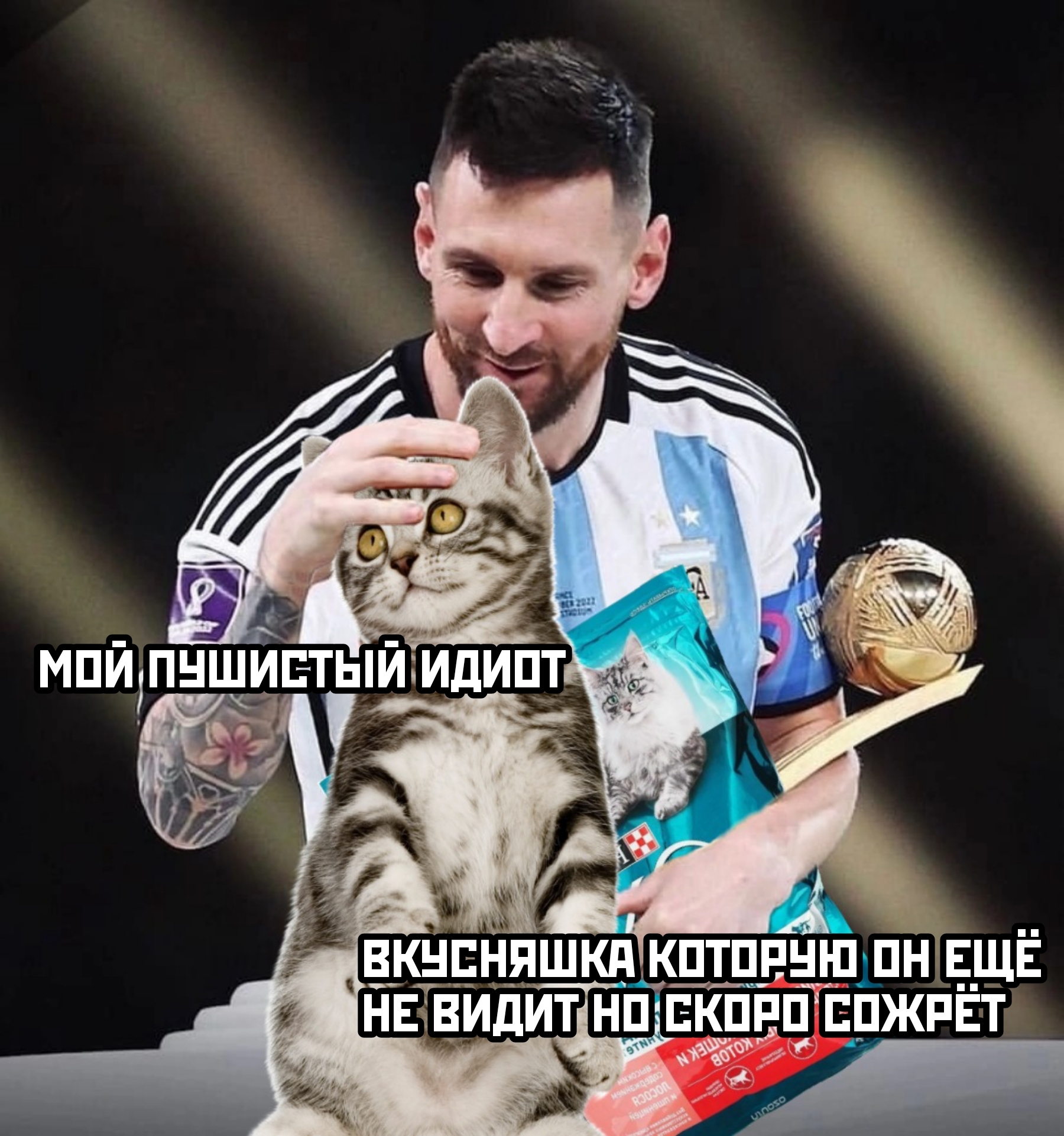 8 Usykota Юмор для всех и каждого Сюрприз для моего дуралейки 2 года назад [моё] Мемы Юмор Картинка с текстом Кот Сюрприз Рифма Лионель Месси Ещё 0