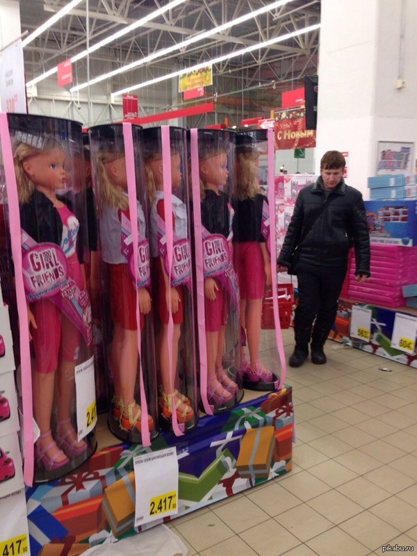 Не про 90-е, правда, в уже нулевые.. были такие куклы бейби бёрн, кажется. Их смесью одной кормить, водой поить, как выходит она из них, подгузники менять, всякое такое.