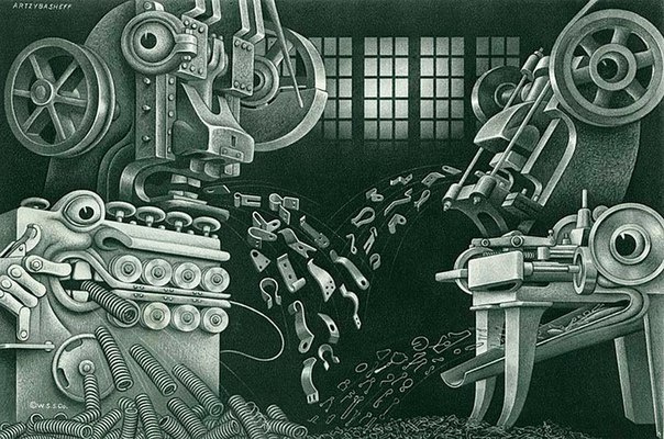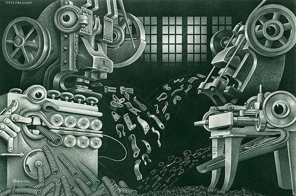 Увлечение психологией наделило машины Арцыбашева антропоморфными чертами и почти человеческим характером. Почти биомеханоиды Ганса Руди...