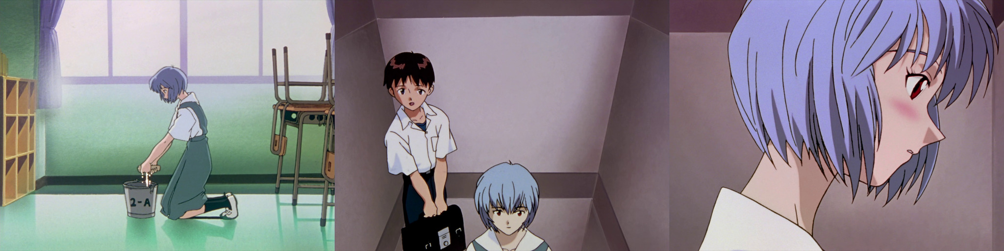 Во время уборки класса (да, да, Японцы тоже этьим занимаются), Синдзи засматривается на Рей, отмечая как она похожа на его мать.