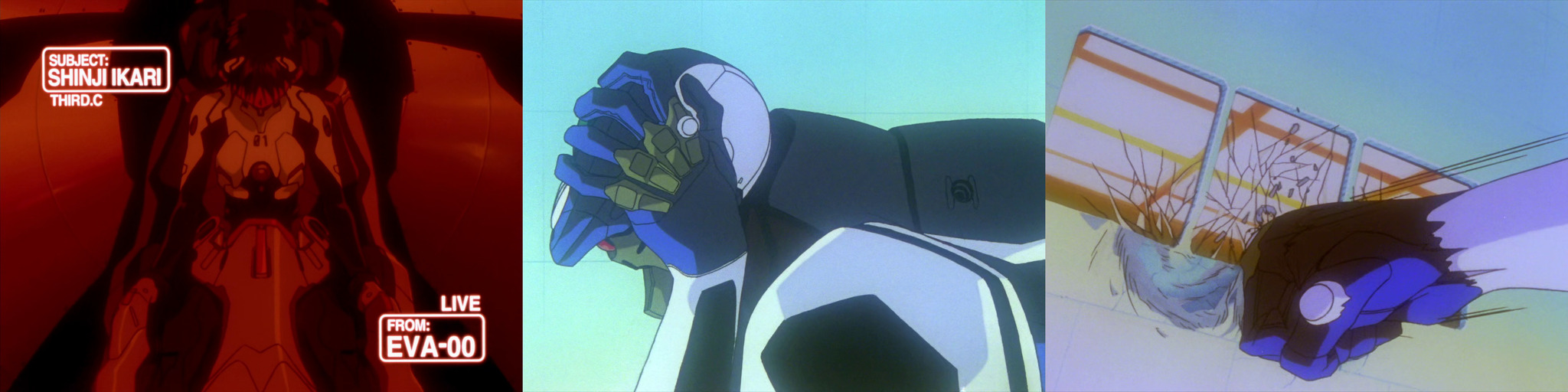 В этот же момент Синдзи находится в контактной капсуле Евы-00 и синхронизируется с ней. По началу всё идёт успешно, но вдруг Синдзи видит жутко выглядящий образ Рей, Ева-00 вновь выходит из-под контроля, начинает атаковать мостик и отключается лишь по исчерпанию внутренних батарей.