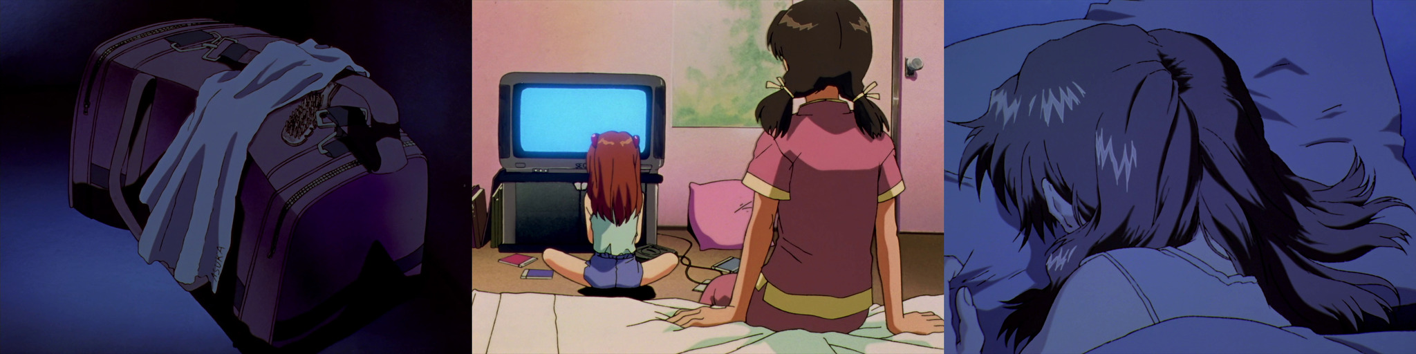 Аска дома у Хикари. Играет в приставку, чтобы спрятаться от экзистенциальной боли и ужаса. Но помогает не очень -- она плачет в подушку и жалуется подруге.
