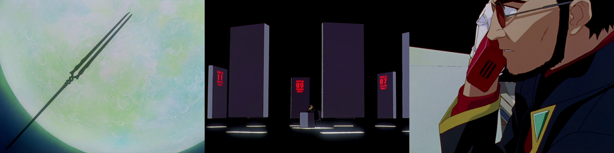 Копьё Лонгиния на орбите Луны -- недоступно для человечества и SEELE. Выволочка. Гендо получает звонок о приближении Ангела.