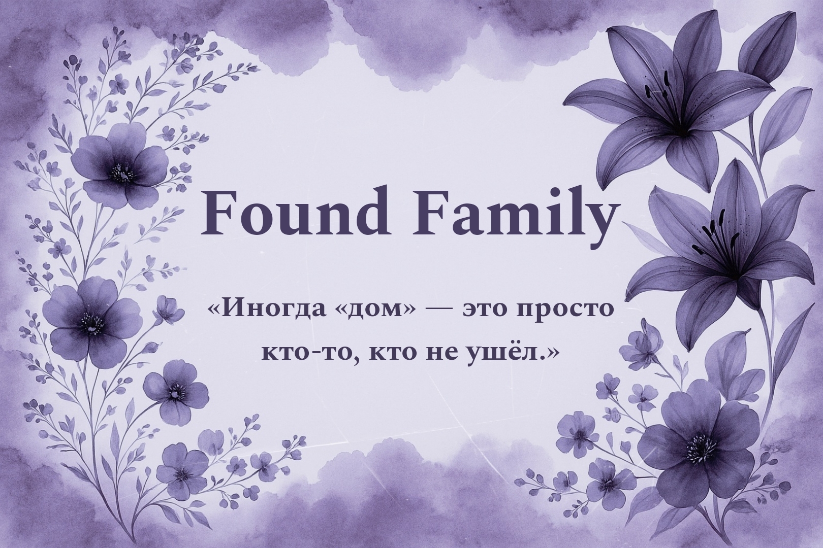 Первый — Found Family (Найденная семья). Любимец травмированных. Потому что иногда настоящая семья — это не те, кто дал тебе жизнь, а те, кто не отвернулся, когда ты был на дне.