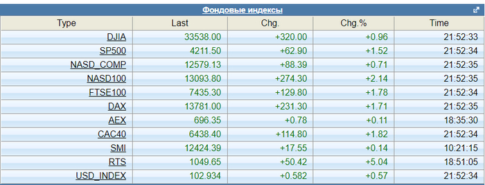 Иностранные фондовые индексы: Отскочили. Опасения по поводу скорого наступления финансового кризиса в "цивилизованных" странах несколько снижаются. Ведём наблюдение.