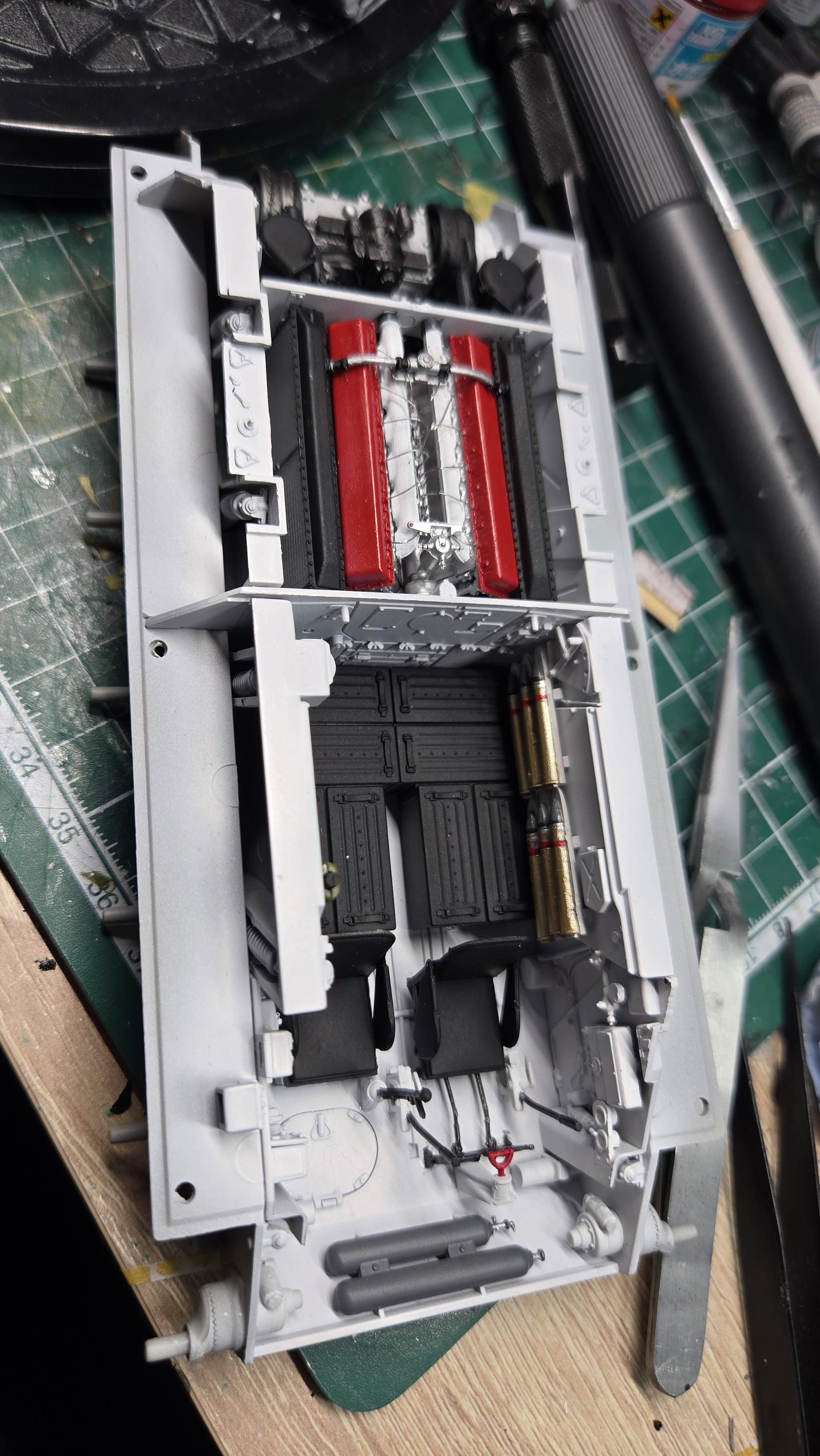 Люки и крышки МТО решил сделать открывающимися, дабы иногда смотреть на красоту. Ну и небольшой прешейдинг черной краской.