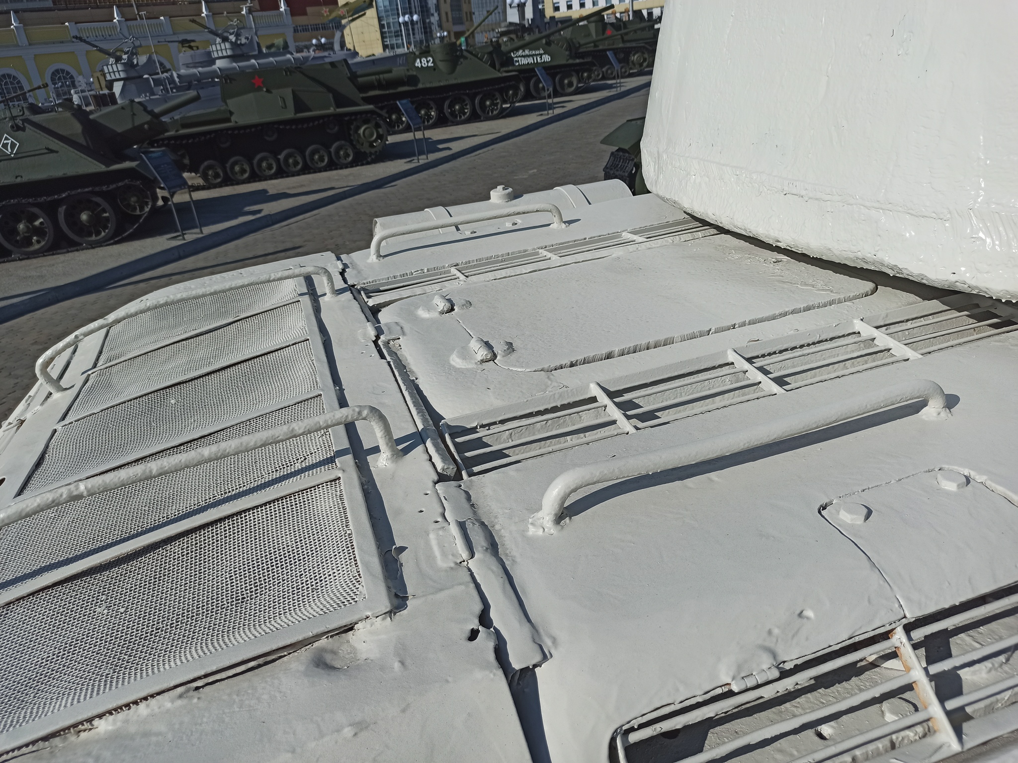 Есть в музее УГМК вот такой интересный экспонат. Копирует танк Т-34/85 с орудием Д-5Т из состава танковой колонны "Димитрий Донской". Сам экспонат, по информации из интернета, прибыл из музея техники Вадима Задорожного.