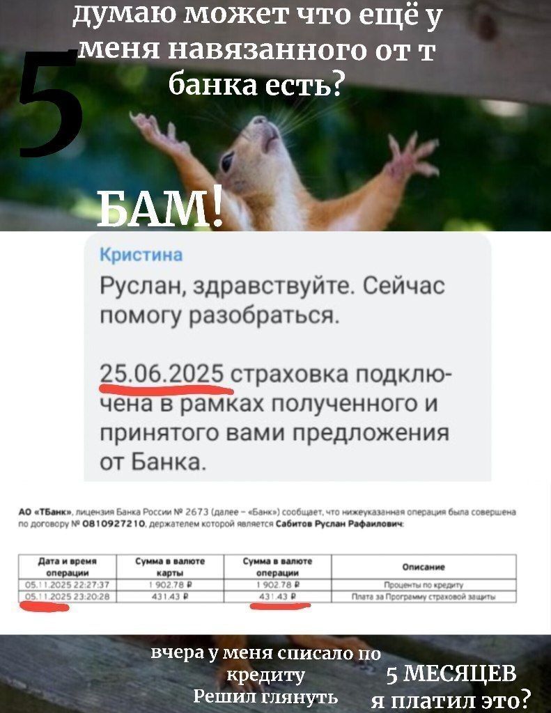 И в этот же день я узнал что до этого мне подключали страховку по кредиту (25.06.25) Операцию сейчас оспариваю