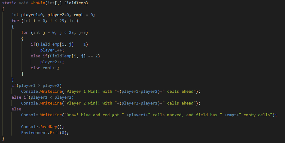 Выводим инфу о победе того или иного противника)