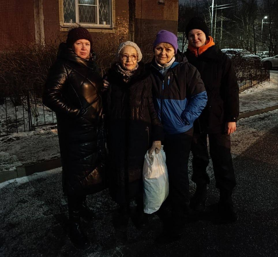 Пьём кофе (мы же за ним сюда заехали как-никак) и везём бабушку домой. Родственники встречают нас у парадной. Спокойной ночи, Елена Петровна!