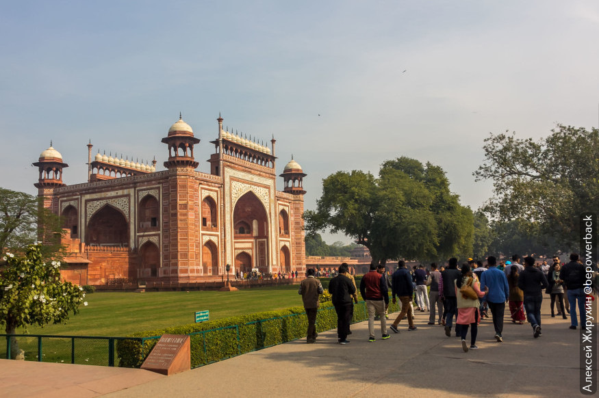 Проходя в парк, идущий к воротам Тадж-Махала, уже как будто попадаешь в иное измерение. Улочки вычищены и нет ни одного нищего, который бы мог пристать к проходящим туристам.