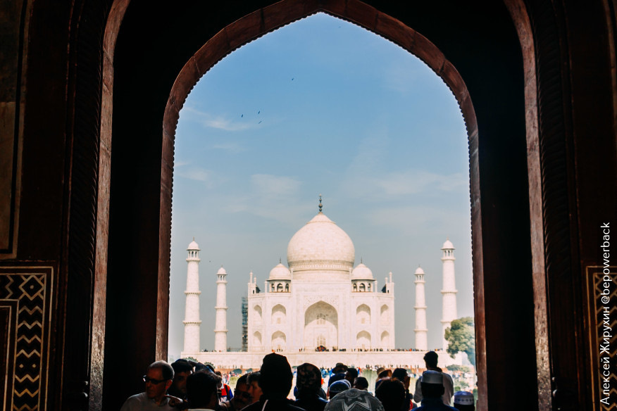 Через арку ворот виднеется Тадж-Махал, величественный и завораживающий. Мечта становится реальностью.