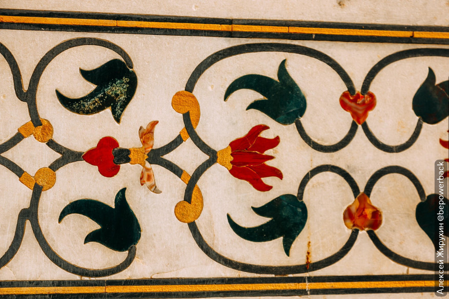 За 400 лет мрамор и врезанные в него в виде узоров полудрагоценные камни совершенно не потеряли свой вид.