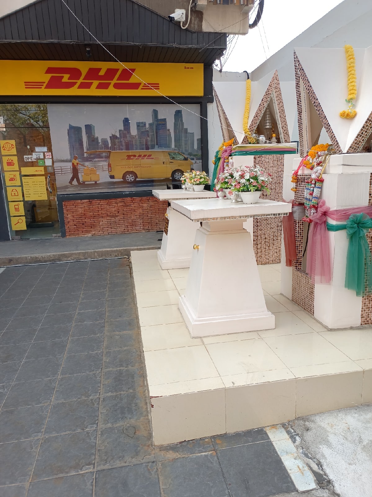 Домики для духов, особенность тайской ветви буддизма. Их можно увидеть везде - перед частными и многоквартирными домами, перед кафе, ресторанами, бизнес-центрами... Вот, например, домики перед офисом DHL.