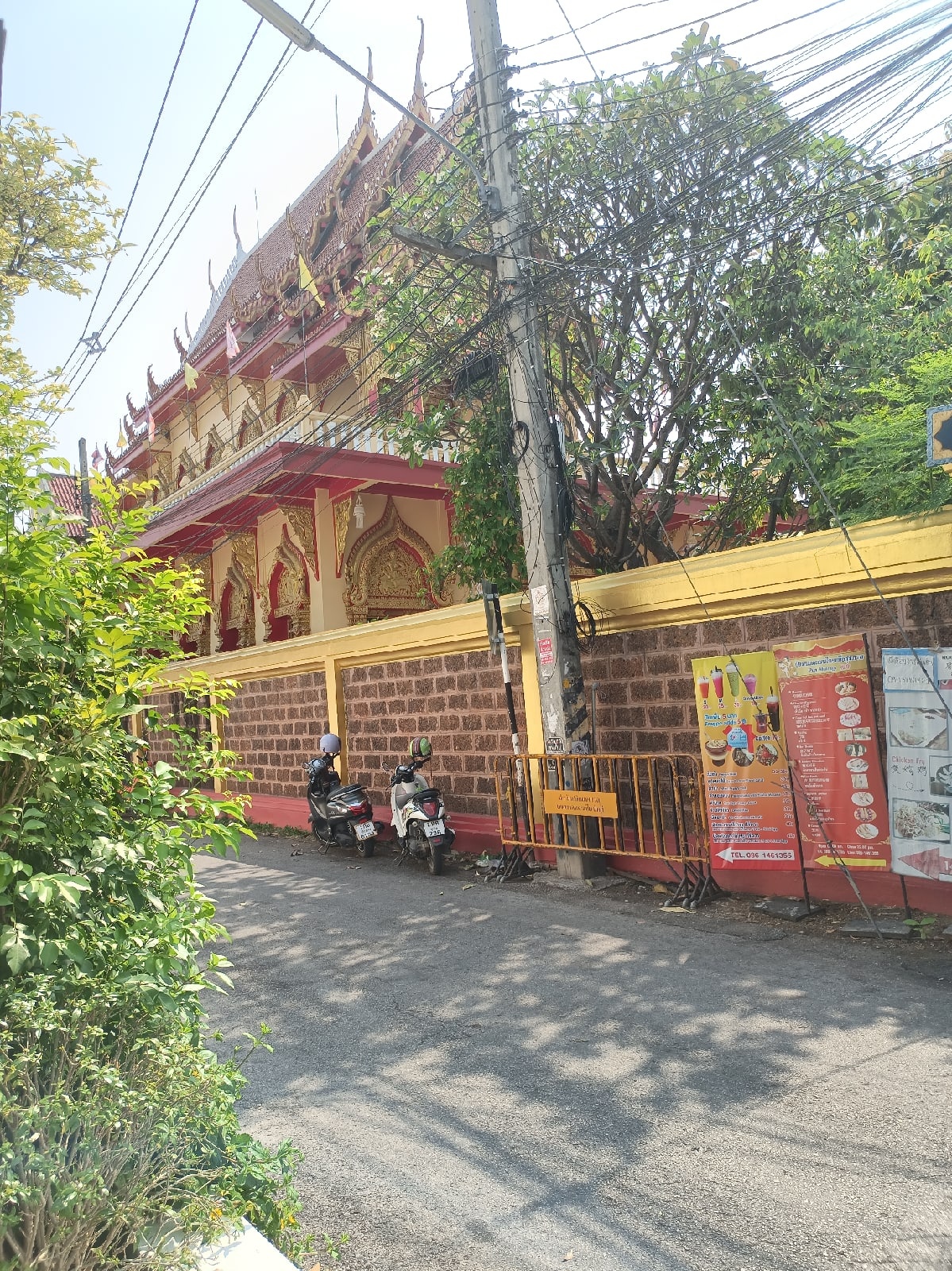 На фотке выше справа можно увидеть старый храм. Это фишка Чиангмая - храмы тут повсюду, они запросто могут стоять вперемежку с отелями, барами и ресторанами. Вот ещё один храм, стоит на противоположной стороне улицы, метрах в 50 от предыдущего: