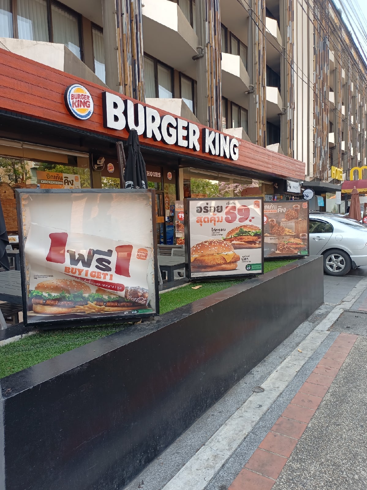 В Бургер-кинге, Макдональдсе и прочих фастфудах пусто, народу нет. Цены, кстати, раза в 2-2,5 выше, чем в России, и в Тае, например, считается вполне нормальным позвать даму на свидание в Макдак )) В меню всех подобных фастфудов очень много блюд с рисом, просто бургеры берут нечасто - дорого.
