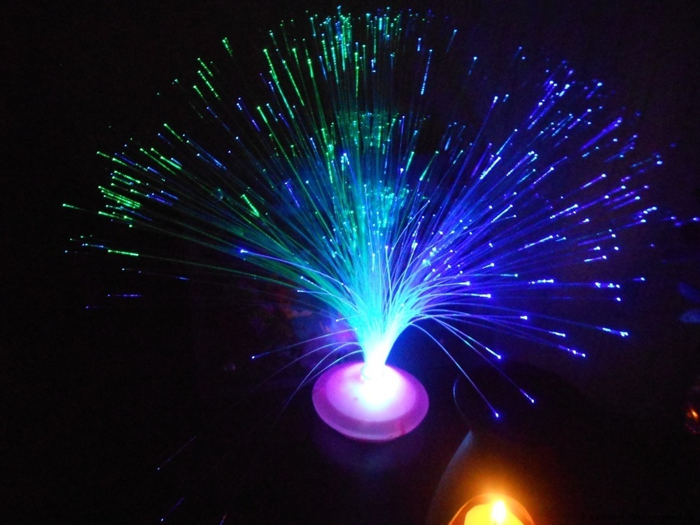 Рискну предположить, что, если мигает диод в центре маленького углубления на первом фото - то это такой типа как светильник. В это углубление вставляется метелка из "оптоволокна", на концах прутиков метелки находятся маленькие шарики - рассеиватели света. Свет от диода по прутикам доходит до рассеивателей, и кажется что у метелки кончики волшебственно светятся.