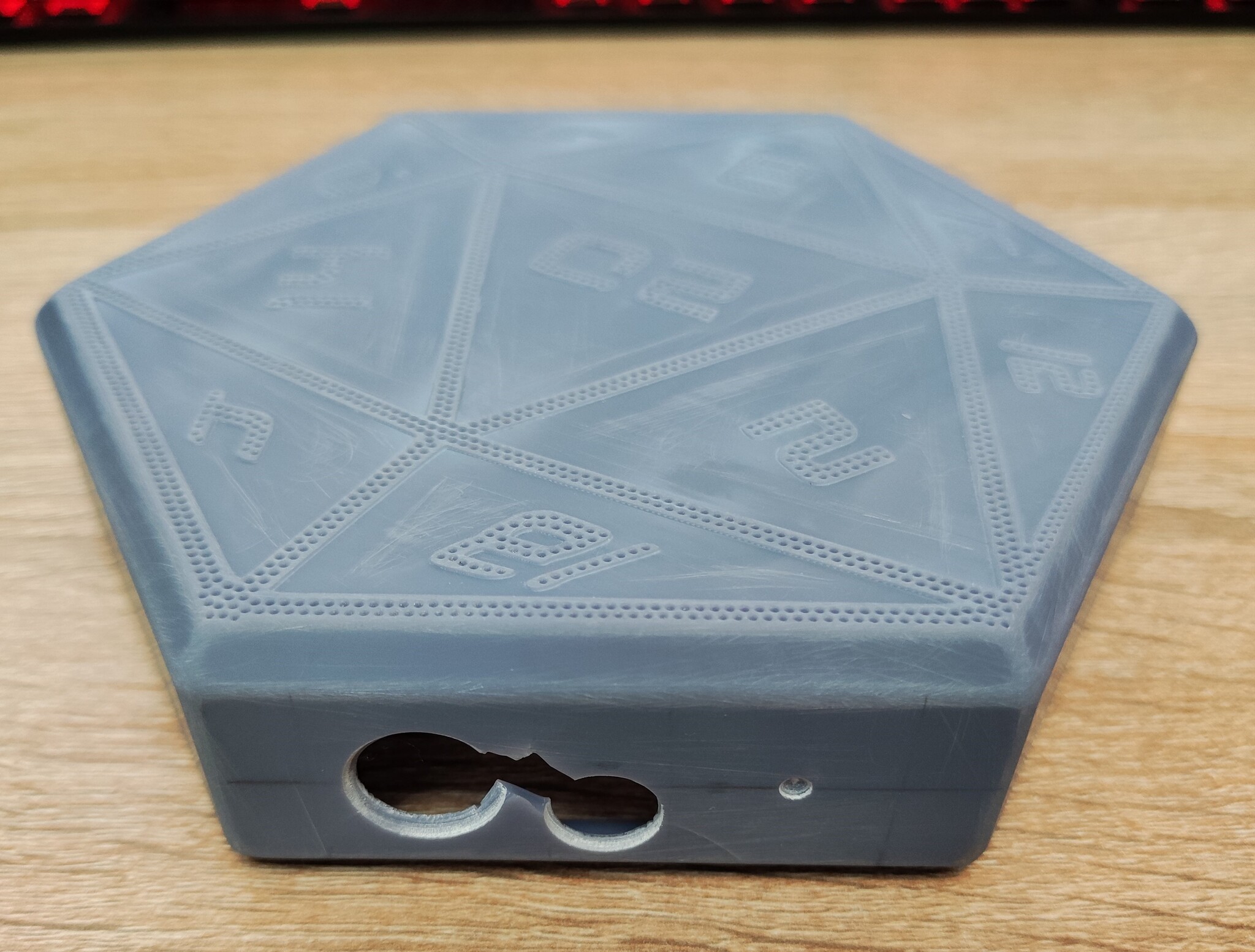 Форма почти сразу пришла в голову - определенно должен был быть дайс. Сделать его прям объемным не позволил магнитный модуль, который обязательно нужно было размещать у самого верха. Поэтому коробка подставки получилась такой. Дальше подумал, что неплохо бы сделать какой-никакой теплоотвод. Тут 2D рисунок дайса подошел очень кстати, по контурам которого и была сделана перфорация. Итоговый вариант меня полностью устроил.