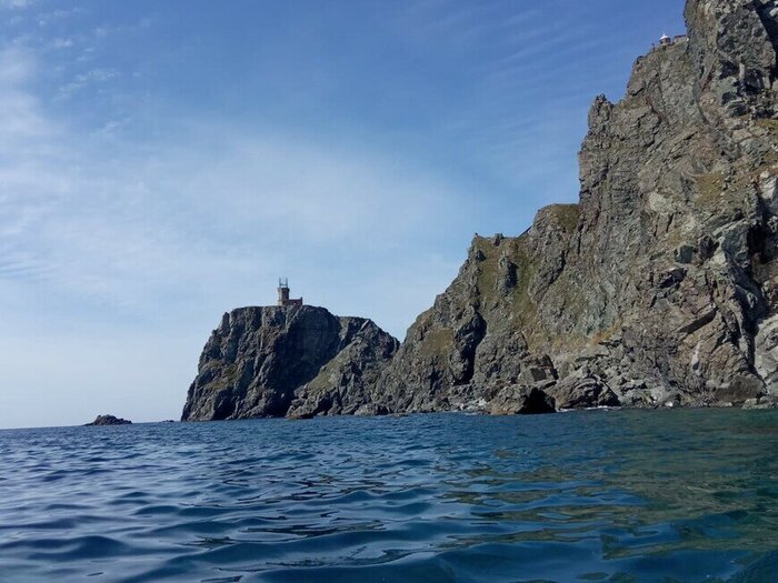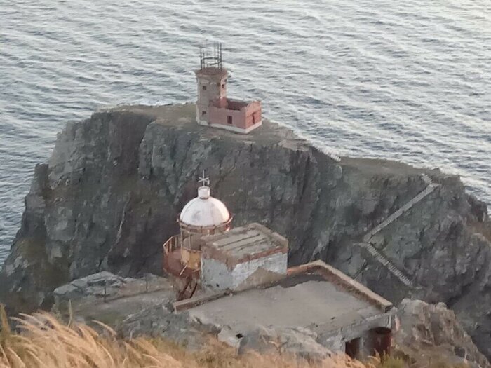 Сейчас маяков на Аскольде целых два — старый и новый. Они расположены на мысе Елагина на незначительном удалении друг от друга. Пройти к старому маяку в настоящее время можно, только имея навыки скалолазания, потому что мост, ранее соединявший маяки, был разрушен. Мы обошли старый маяк со стороны моря и сходили к новому зданию маяка полюбоваться закатом и потрясающим видом на острова архипелага императрицы Евгении.