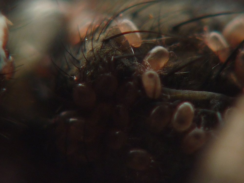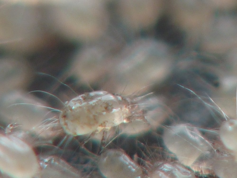 1-я это клещи на мухе, 2 и 3 я хз что такое, видимо тож клещи какие то, эту дрянь я заметил на крышке кастрюли, как приехал домой после отпуска.. Выглядело ЭТО, как легкий такой белесый налет, но сцуко он при ближайшем рассмотрении шевелился... Взял фотик и.. вот.