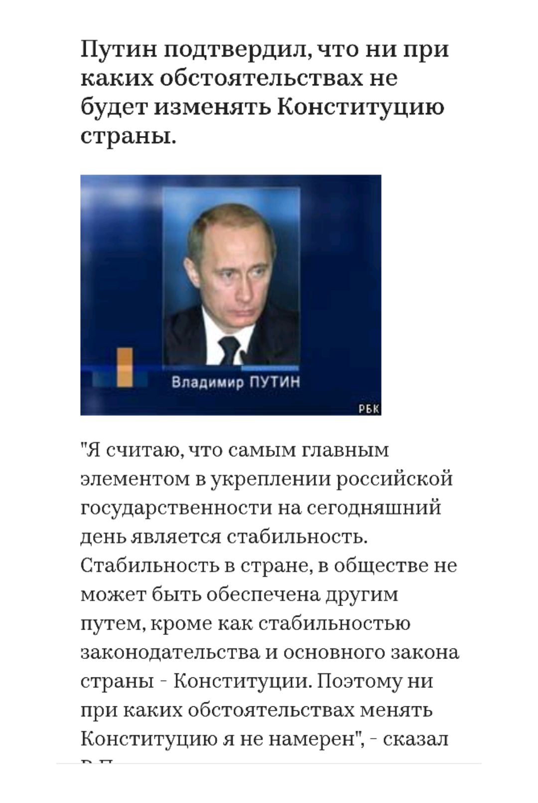 Cherepahuy 5 лет назад Так будет или нет? Ссылка на источник.https://www.rbc.ru/politics/18/09/2005/5703bb319a7947afa08c8... Конституция Политика Голосование Ещё 0