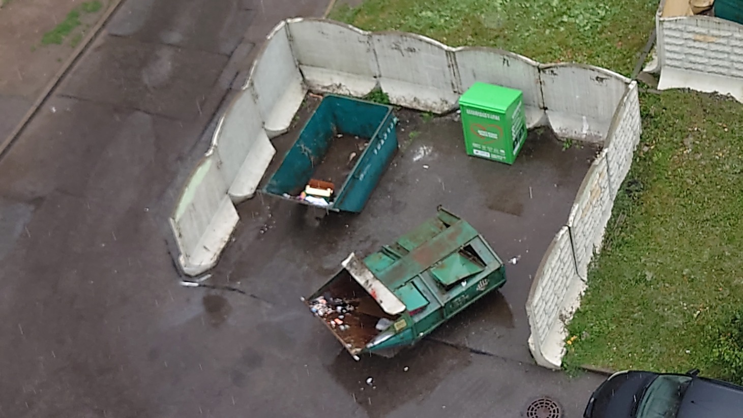 Повадились в нашем дворе мусоровозы ставить пухто не так, как это предусмотрено проектом, а как им удобнее, в результате чего перекрывается часть проезда.