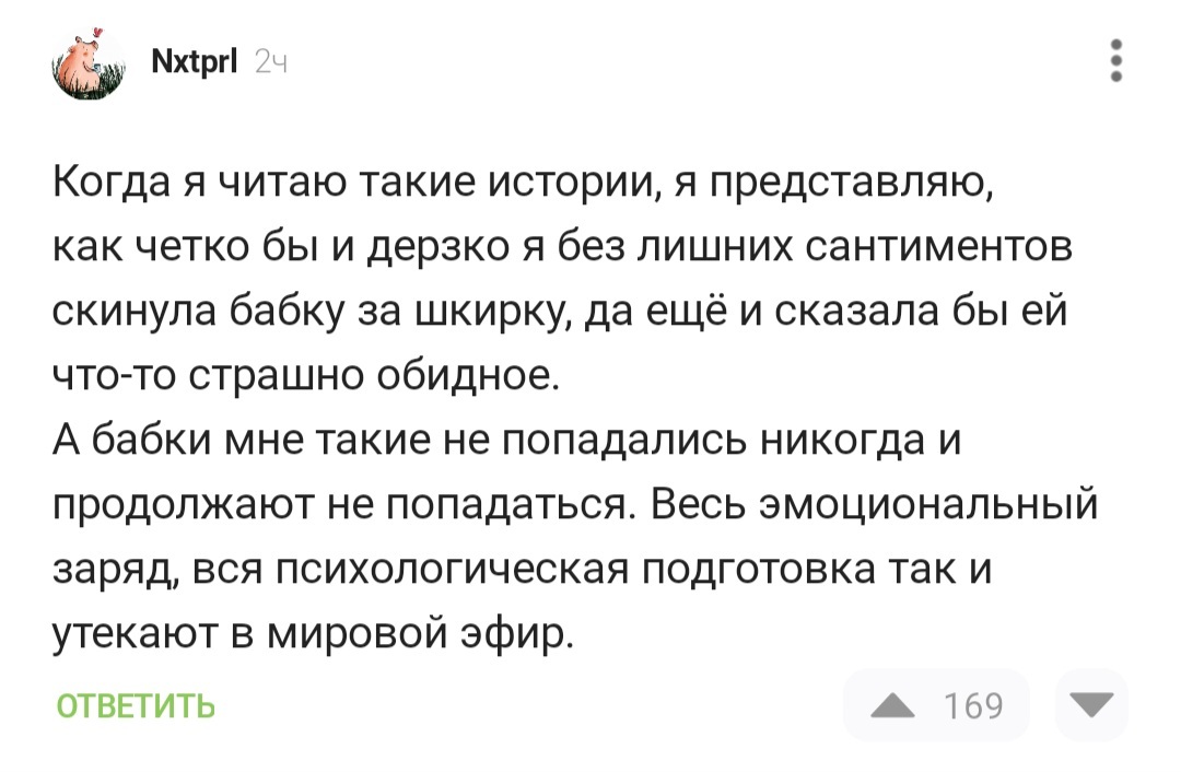 8 aoblaka Так ее, так! 3 дня назад #comment_384043472 Комментарии на Пикабу Бабка Уступите место Скриншот 3 1 Ещё 0