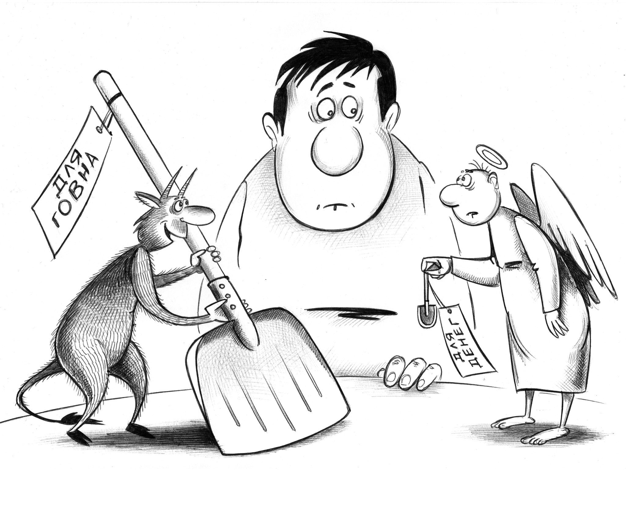 364 KorSun.official Так и гребем 4 года назад [моё] Сергей Корсун Карикатура Рисунок ручкой Ангел Демон Судьба Бедность Деньги Фекалии Жизнь 1 Ещё 0