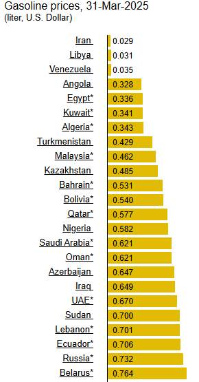 Горд за свою страну, пока в мире ,цена на нефть упала почти на 10 %, цена бензина в моей стране, никуда не собирается, только если вверх)В моей стране это нормально.