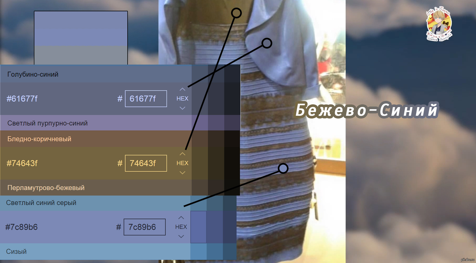 danyclockworker Так какого цвета платье? Все просто 10 лет назад К посту http://pikabu.ru/story/_3121320 Не знаете какой цвет? Все просто, берем и определяем по HEX цветам. [моё] Цвет Платье Загадка