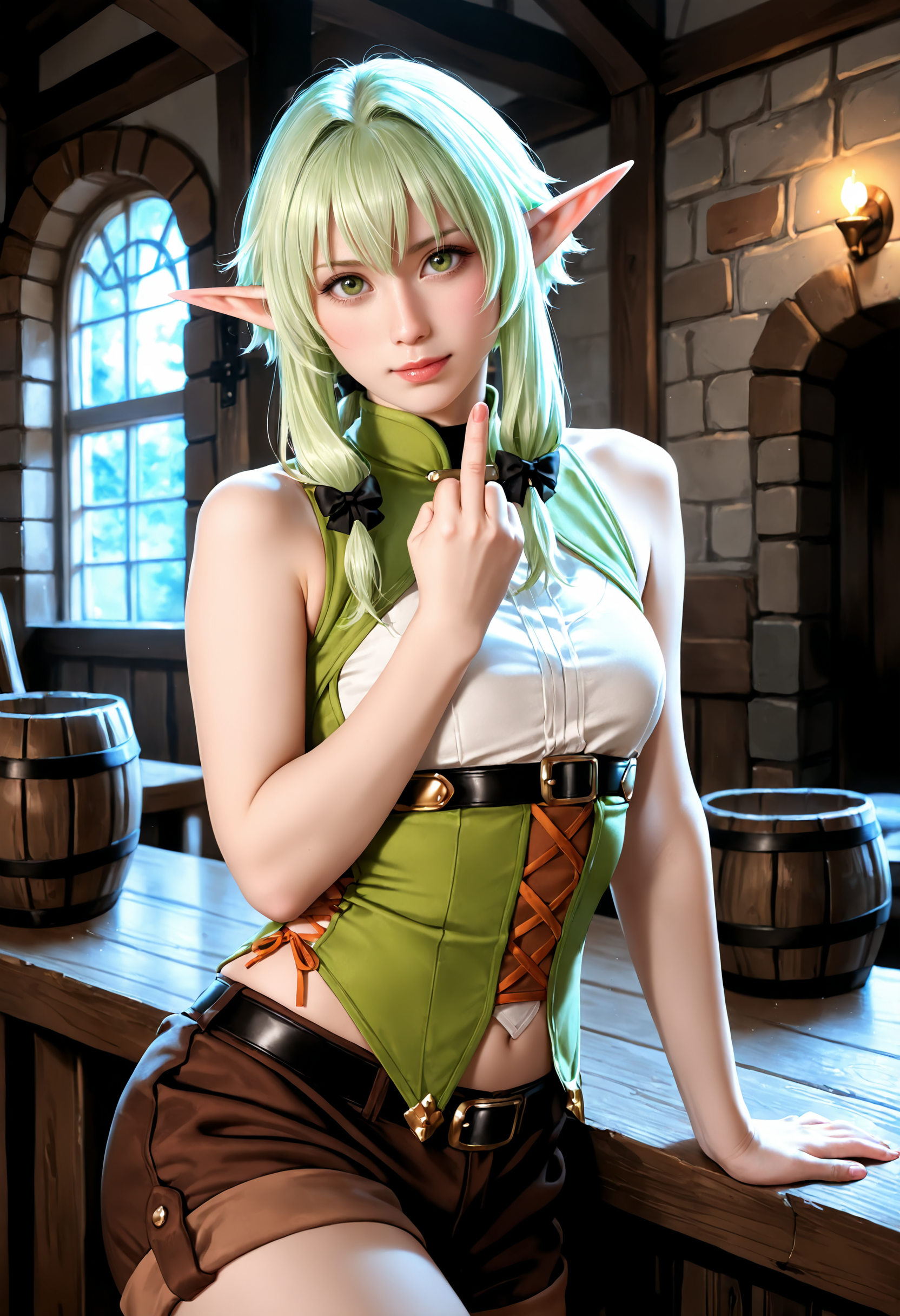 Так это и есть вымышленный персонаж, High Elf Archer из аниме Goblin Slayer. Все картинки сгенерированы (отрисованы) нейросетью на моем компе, это же не фотки, поэтому тут может быть что угодно