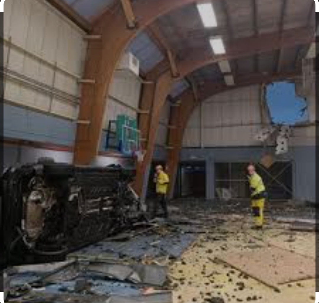 Спортсмен клуба «Оуд-Хеверли» Софьян Кийин мчался по дороге со скоростью 200 км/ч, но не справится с управлением, взлетел в воздух и залетел в спортивный зал.