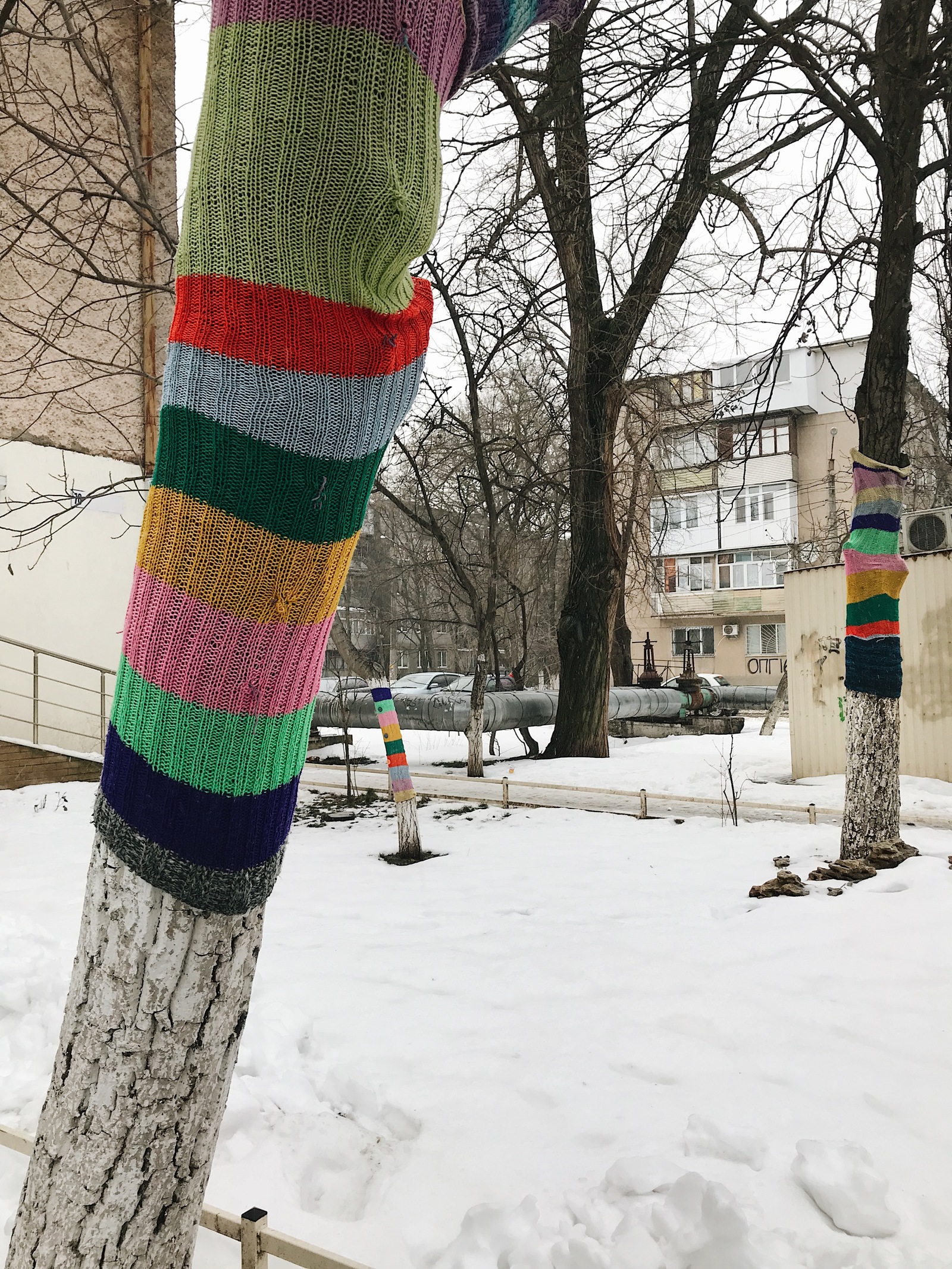 1 Feofani4 7 лет назад Так точно не замёрзнут) Шла сегодня с работы, и увидела такую милоту - деревья возле стоматологии бережно упакованы в вязанные футлярчики. З - забота) [моё] Вязание Свитер Дерево Охрана природы Длиннопост