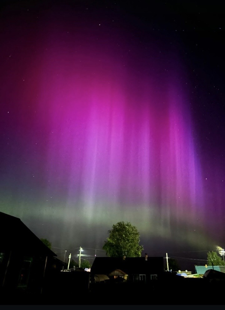 В новостях говорили, что в 11 регионах страны в небе так играло сияние. Только где-то преобладали зелёные краски, а вот на Ангаре в Красноярском крае была такая небесная палитра. Перед грандиозностью и красотой этого явления, наверное, можно дар речи потерять от восторга.