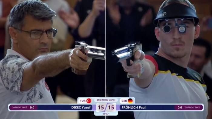 Юсуф Дикеч из Турции выиграл чемпионат Европы, победив своего соперника из Германии. Он уверенно выиграл чемпионат, не используя обычные линзы, чтобы избежать размытия изображения и повысить точность, или защитные наушники для снижения уровня шума, как это было на Олимпийских играх 2024 года.