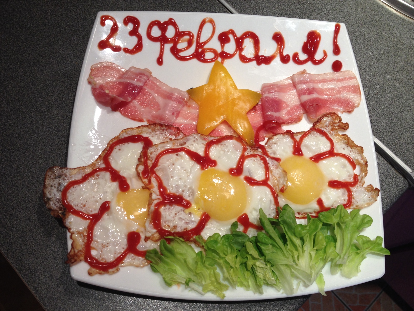 20 Agy1972 Таким завтраком меня поздравила жена с сегодняшним праздником... Люблю её) 9 лет назад [моё] Завтрак 23 февраля - День Защитника Отечества Утро Еда Вкусно Жена