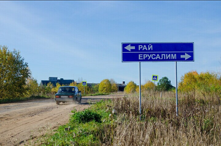 В пятнадцати километрах от убогого районного центра с названием Вохма по обе стороны от грунтовой дороги раскинулись деревни Рай и Ерусалим. Это не опечатка, деревня действительно называется Ерусалим, а не Иерусалим. Редкие командированные любят фотографироваться около двух указателей, торчащих в противоположные стороны, а потом размещать фото в социальных сетях с комментарием: «Вот я и в раю». Внешне это две убитые деревни, состоящие из каких-то бесформенных деревянных халабуд непонятного назначения, за которыми ютятся полуразвалившиеся маленькие домики.