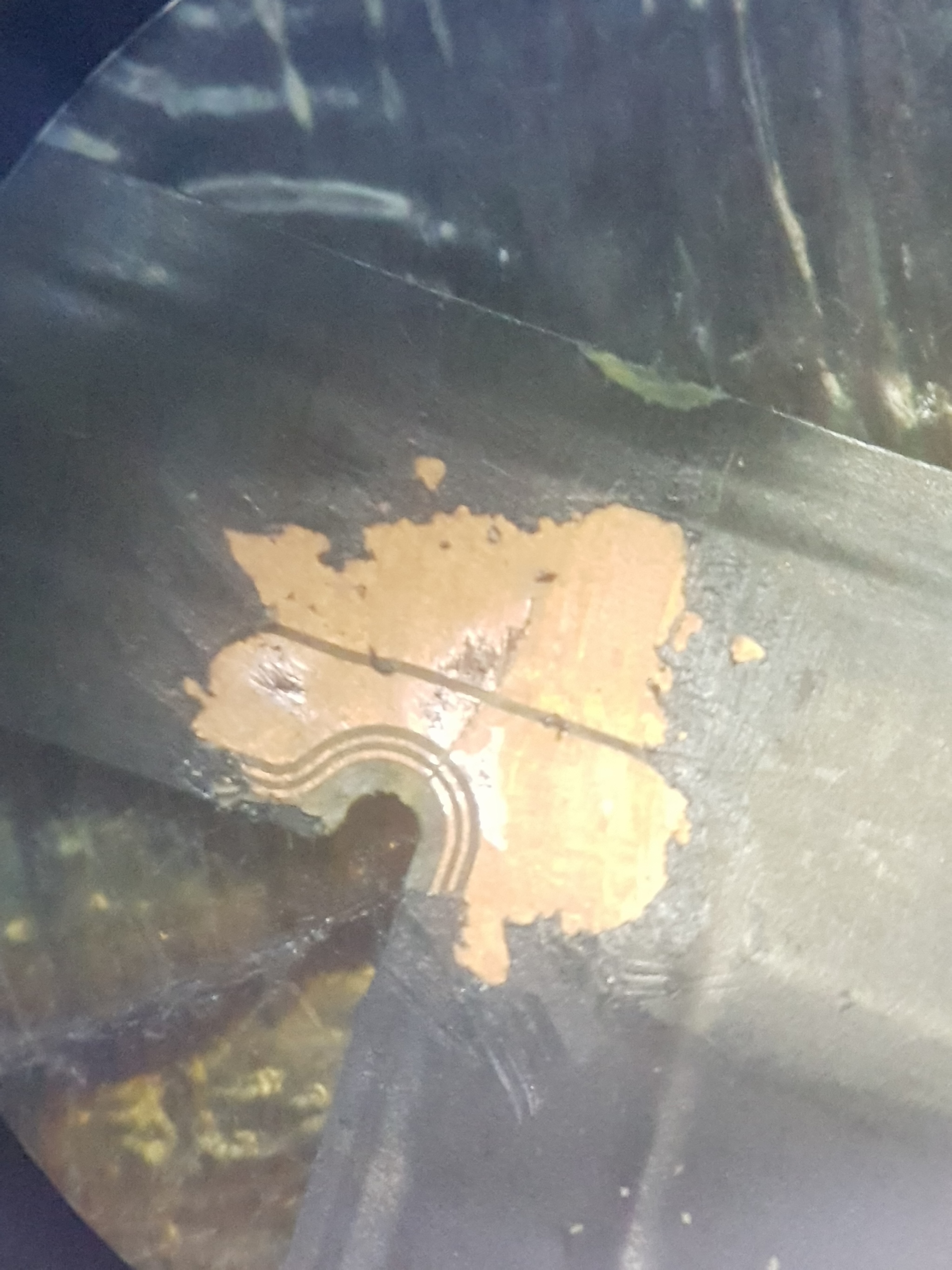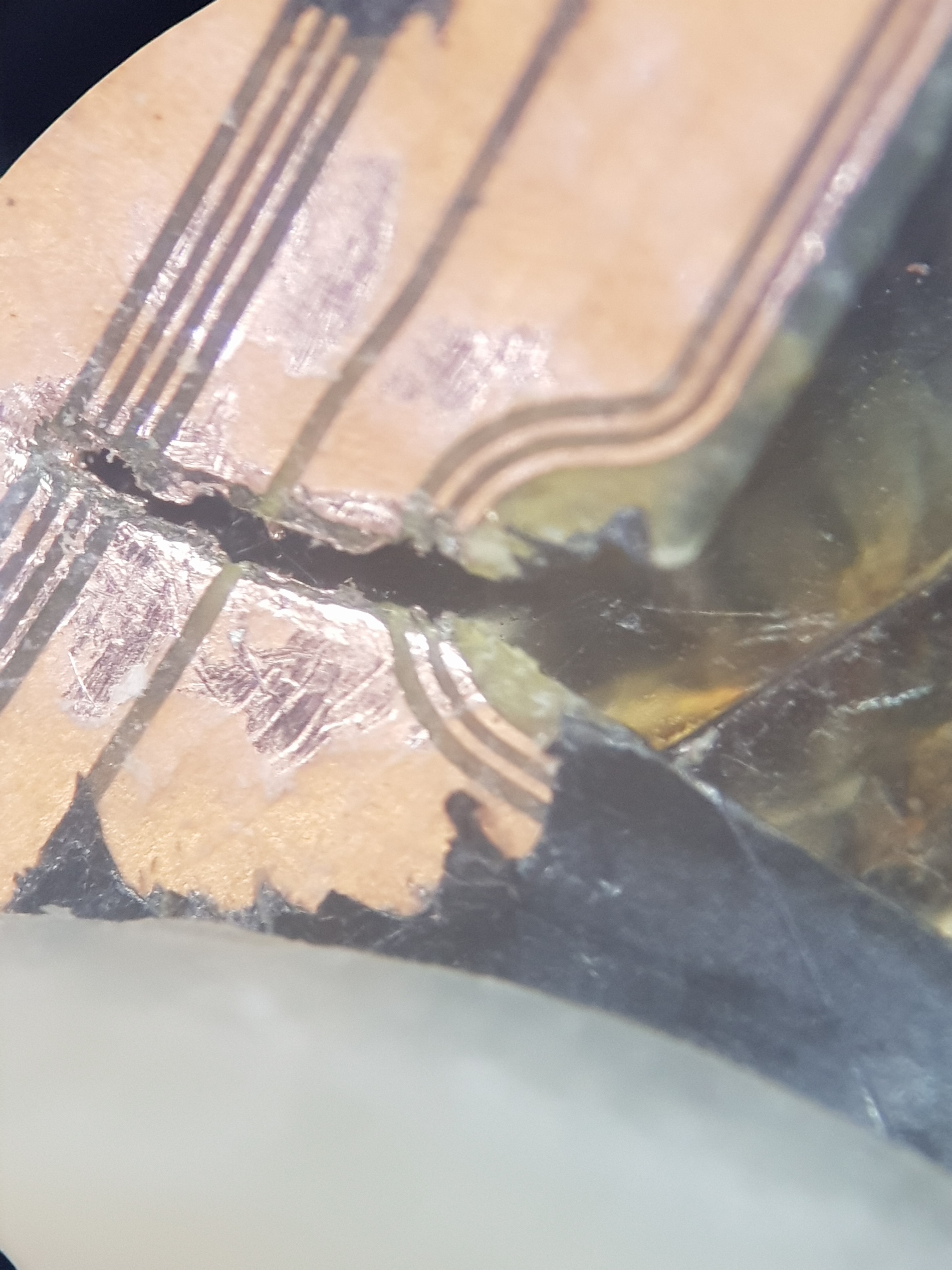 Плюс ко всему некоторые слои замяты и замкнуты между собой, такое бывает когда шлейф рвется. Толщина мелких дорожек меньше волоса.