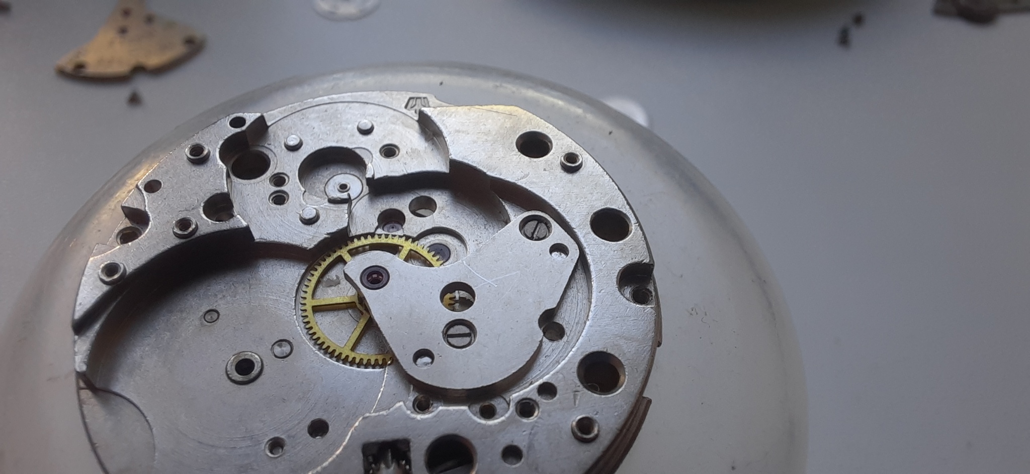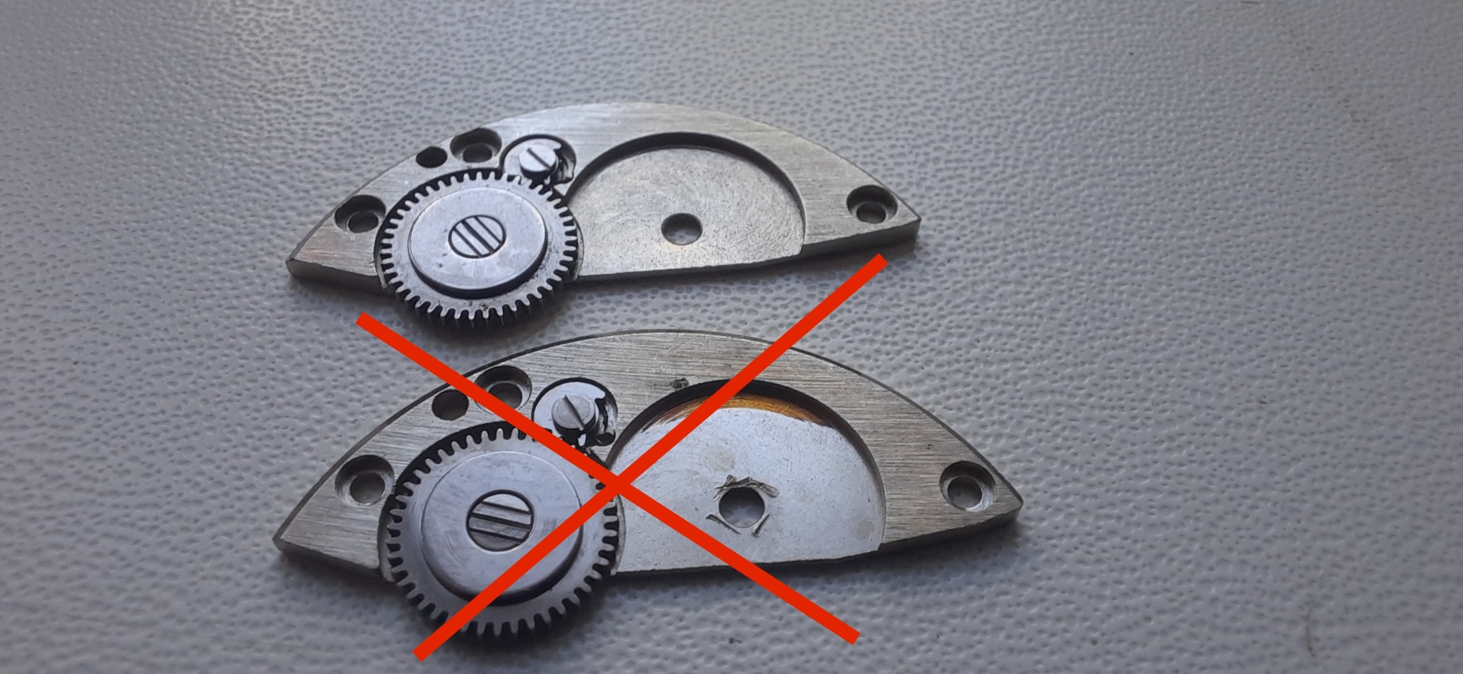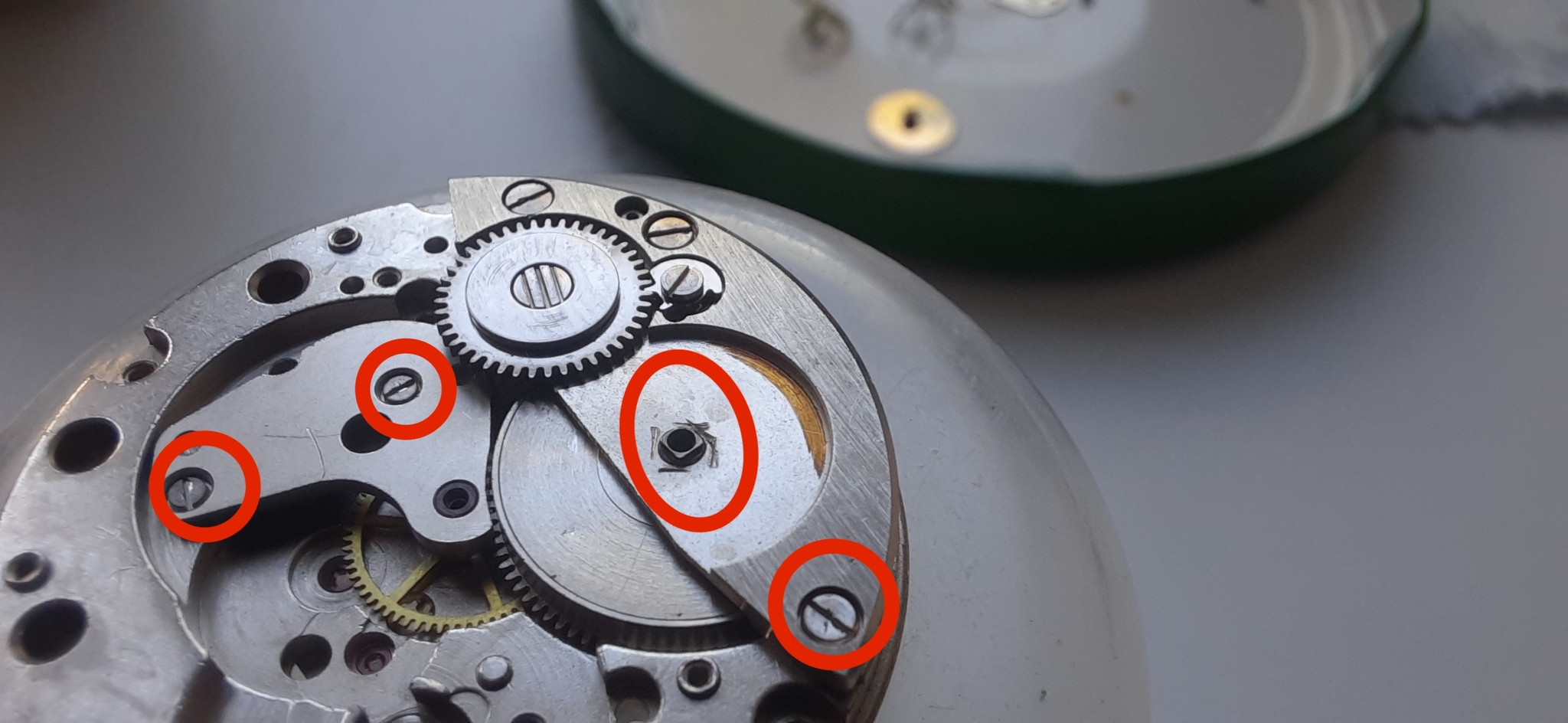 Заказчик сразу сказал что да циферблат поцарапанный , стрелки убитые , предложил ей снять остальную краску или вообще посмотрю что можно сделать. Ну и так далее обговорили с ней мелочи. Но что меня убило при вскрытие ? На второй фотографии мы видим как сидит не родной болт на мосту баланса. Правда говоря меня это улыбнуло ))