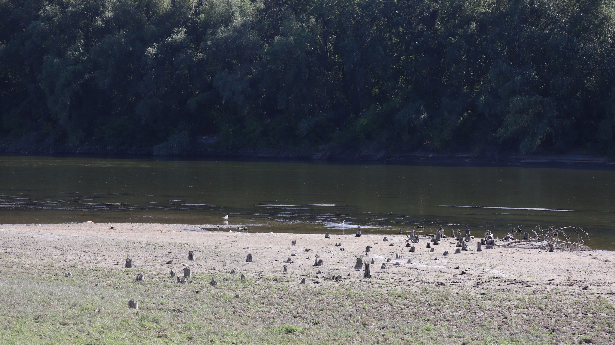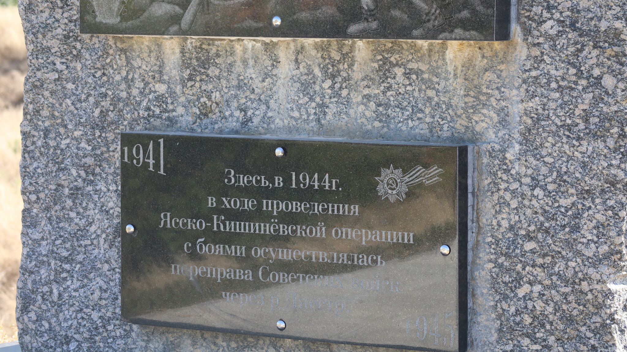 Но реальная переправа была левее от этого памятника и в этом году , когда Днестр обмелел, у меня была возможность снять , столбики, что от нее остались.