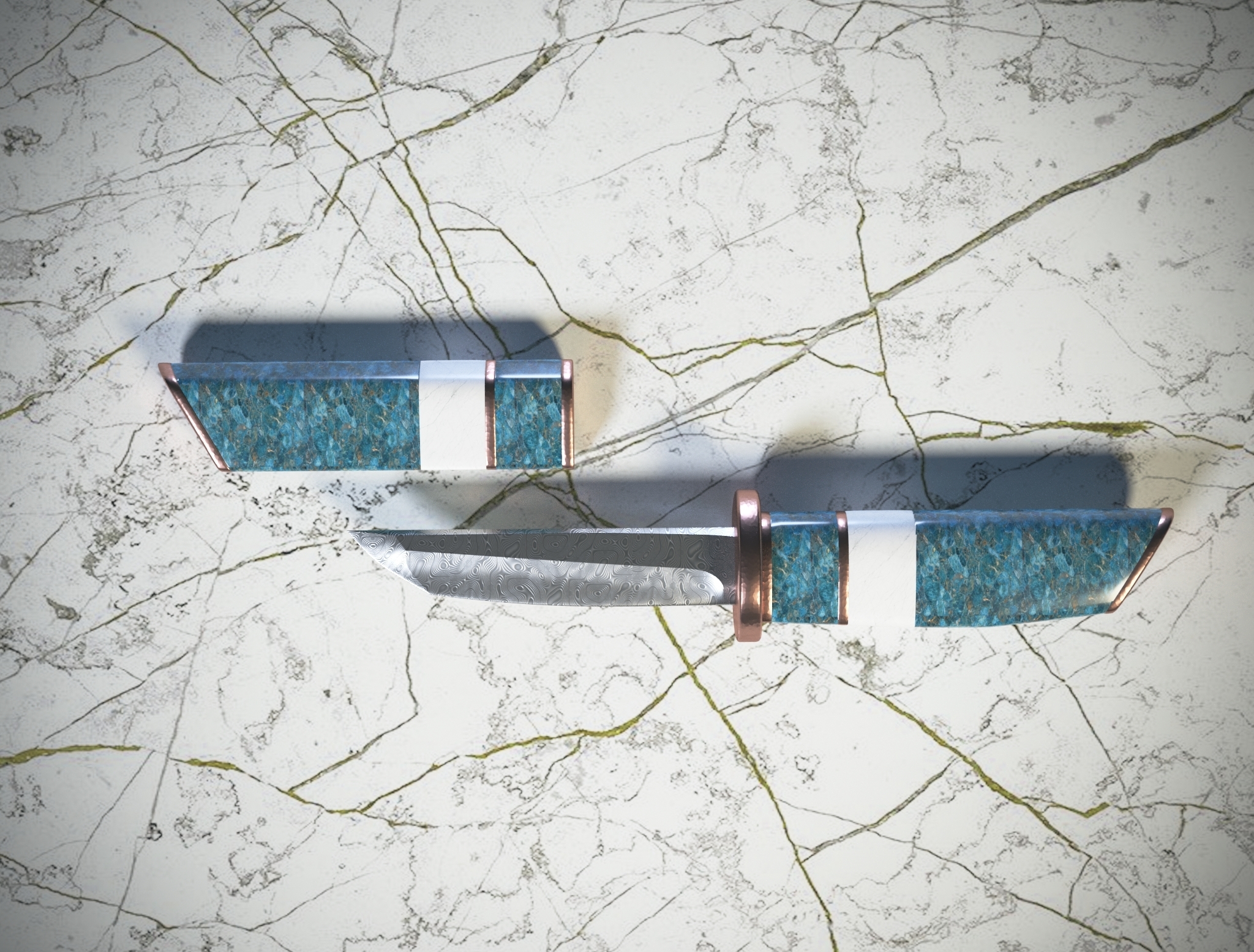 Проект я честно называю: «нож со всеми допами магазина». Примерно так история и выглядела: пишет клиент и говорит, что хочет максимально дорогой нож в виде танто. Вот прям хочет, чтобы дорохо-бохато. И побольше мамонта.