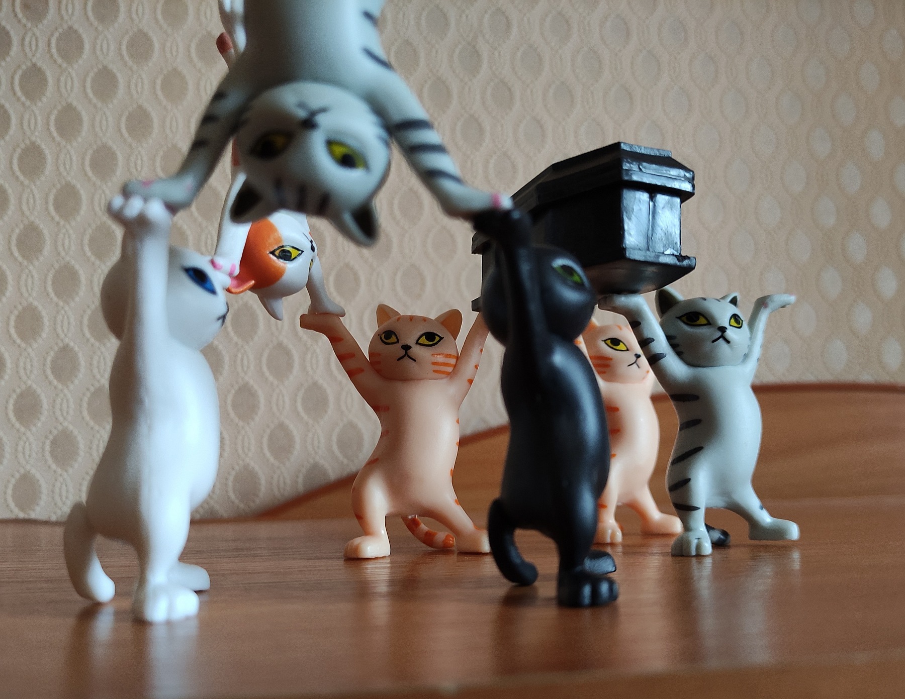 Я не запомнил юзернейм того, кто писал про этих котиков, но спасибо тебе. Взял 3 набора, хотя сейчас думаю, что стоило брать все 10. Залип на пару часов, но так и не смог построить башню больше трёх этажей. На днях принесу блютак и буду их склеивать. Хочу котобашню.
