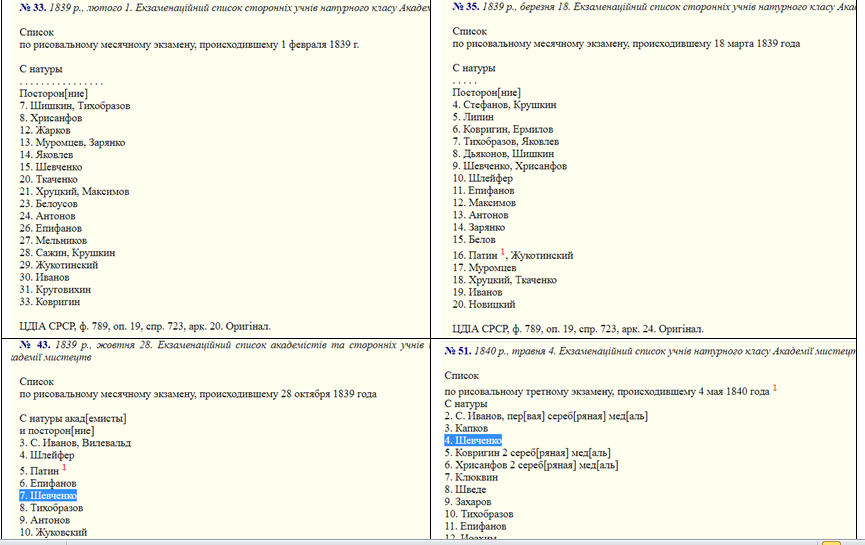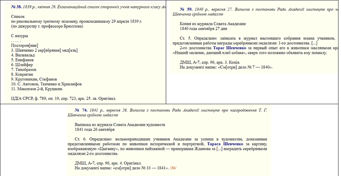 Вот на этих третных экзаменах Шевченко был поощрен серебряными медалями за второе и третье места