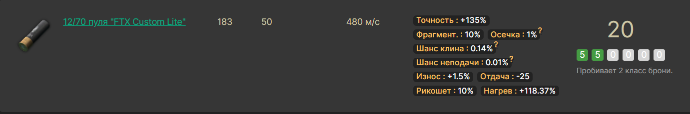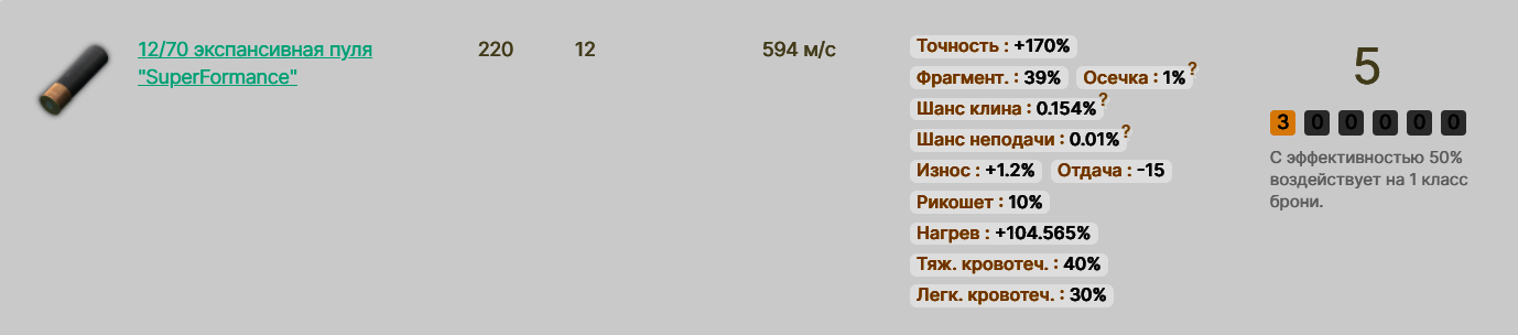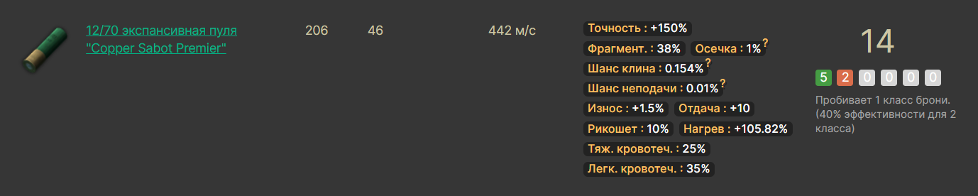 Ладно, заодно уж рассмотрим патроны, с которых особо нет смысла стрелять на дальняк, потому что у них низкий бафф к точности - +80%.