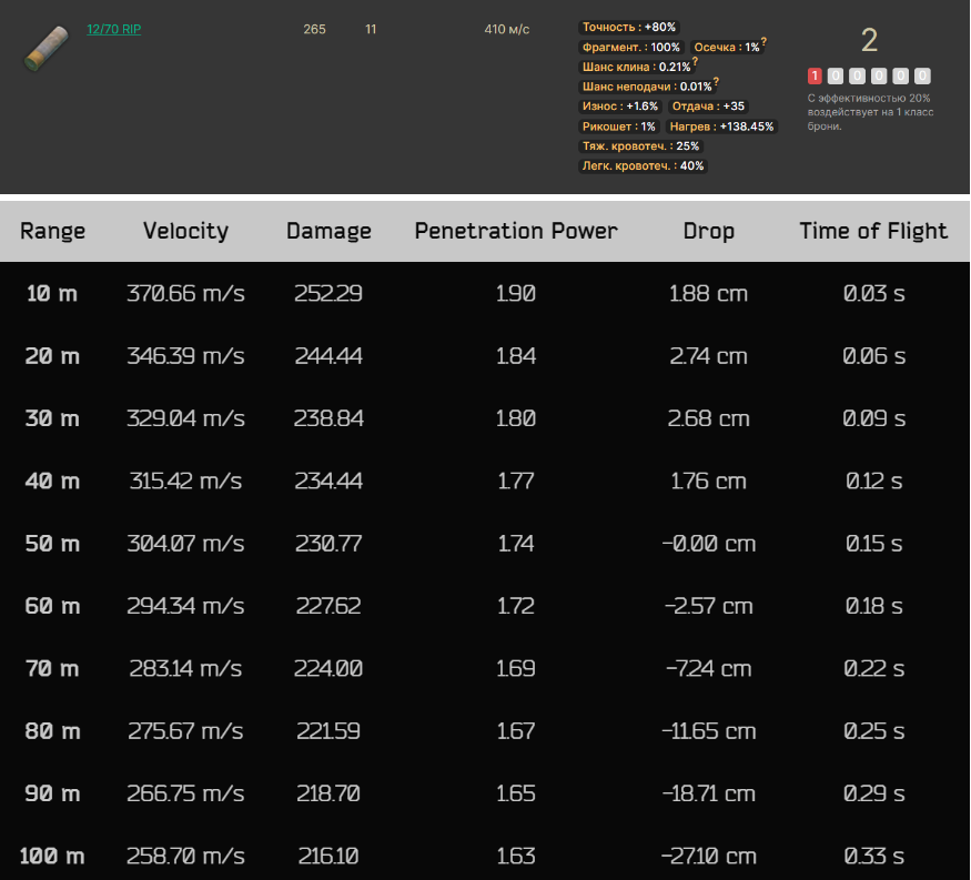 Два вопроса, которые периодически преследуют нас в этой игре: как и нахуя? В какой вообще ситуации карковчанам может быть интересна баллистика картечи, если ею работают только в упор? На большом расстоянии она просто превращается в свинцовый дождик. Картечь теряет 56 процентов своей скорости уже через 50 метров от дульного среза (с 415 до 184 м/с). Пуля SF же потеряет всего 12,5 процентов (с 594 до 519 м/с) на том же расстоянии.