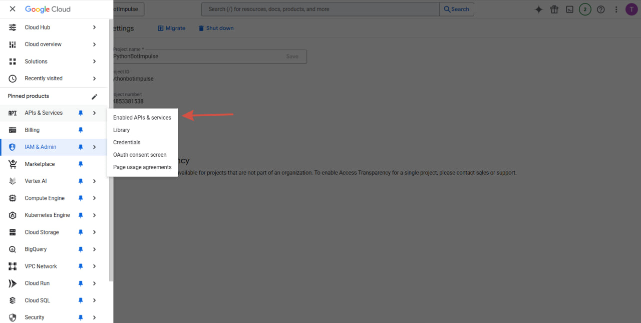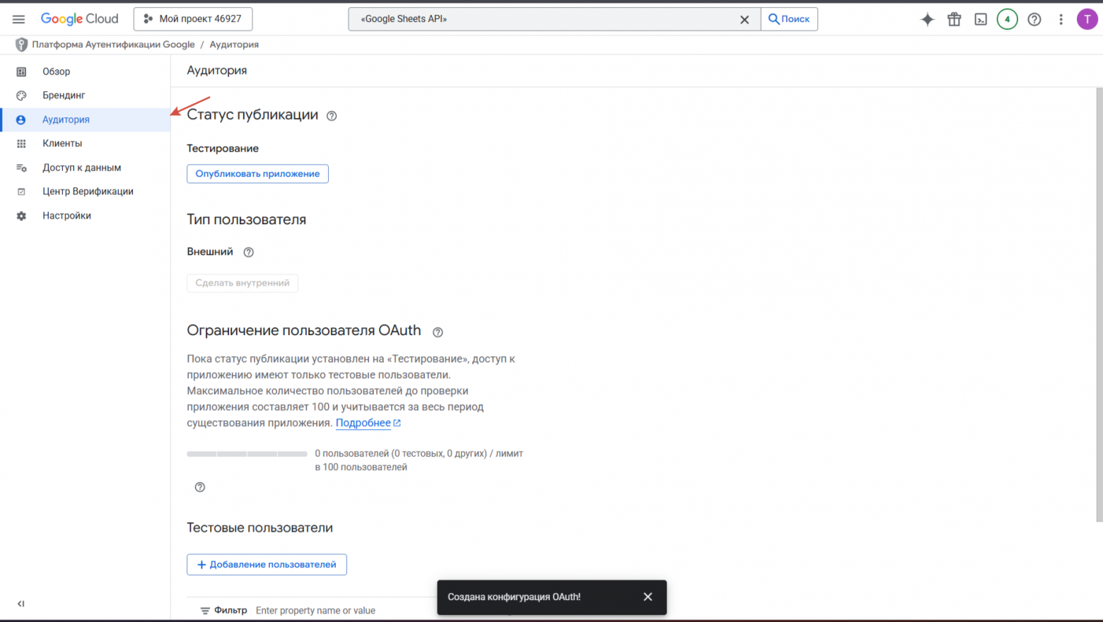 В меню слева выберите «API и сервисы» → «Экран согласия OAuth»