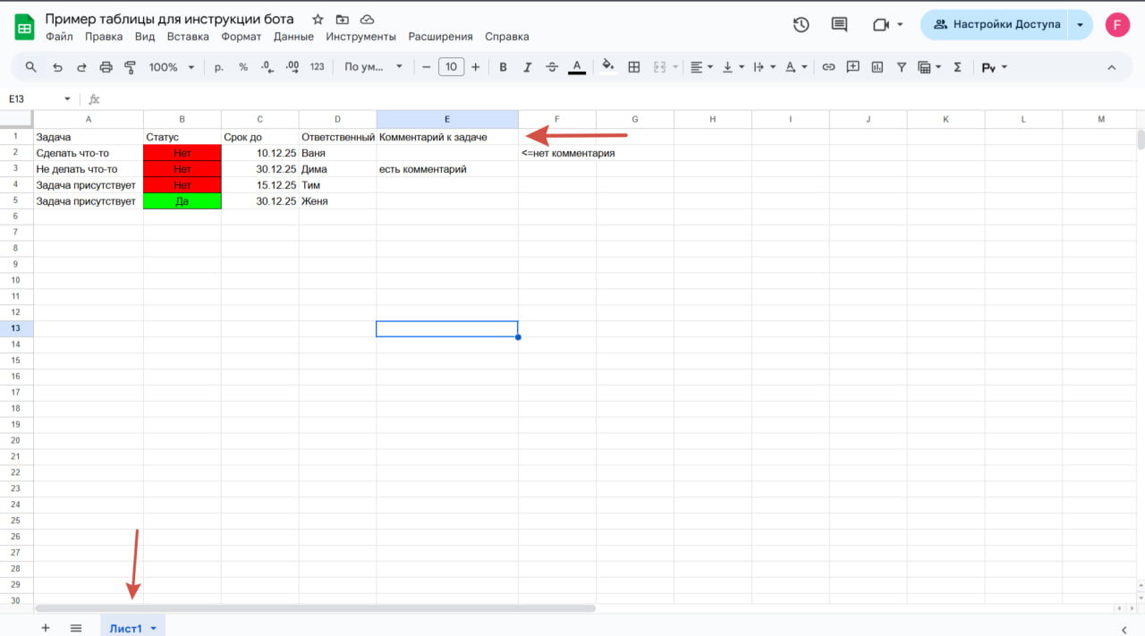 SPEADSHEET_ID берем из гугл таблицы с задачами: