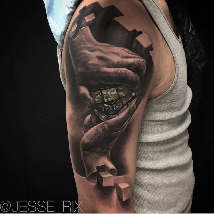 16 TriadaX Тату. 8 лет назад Оптические иллюзии в тату от Джесси Рикс (Jesse Rix). https://vk.com/zanami.club Тату Иллюзия 3D Zanamiclub Длиннопост