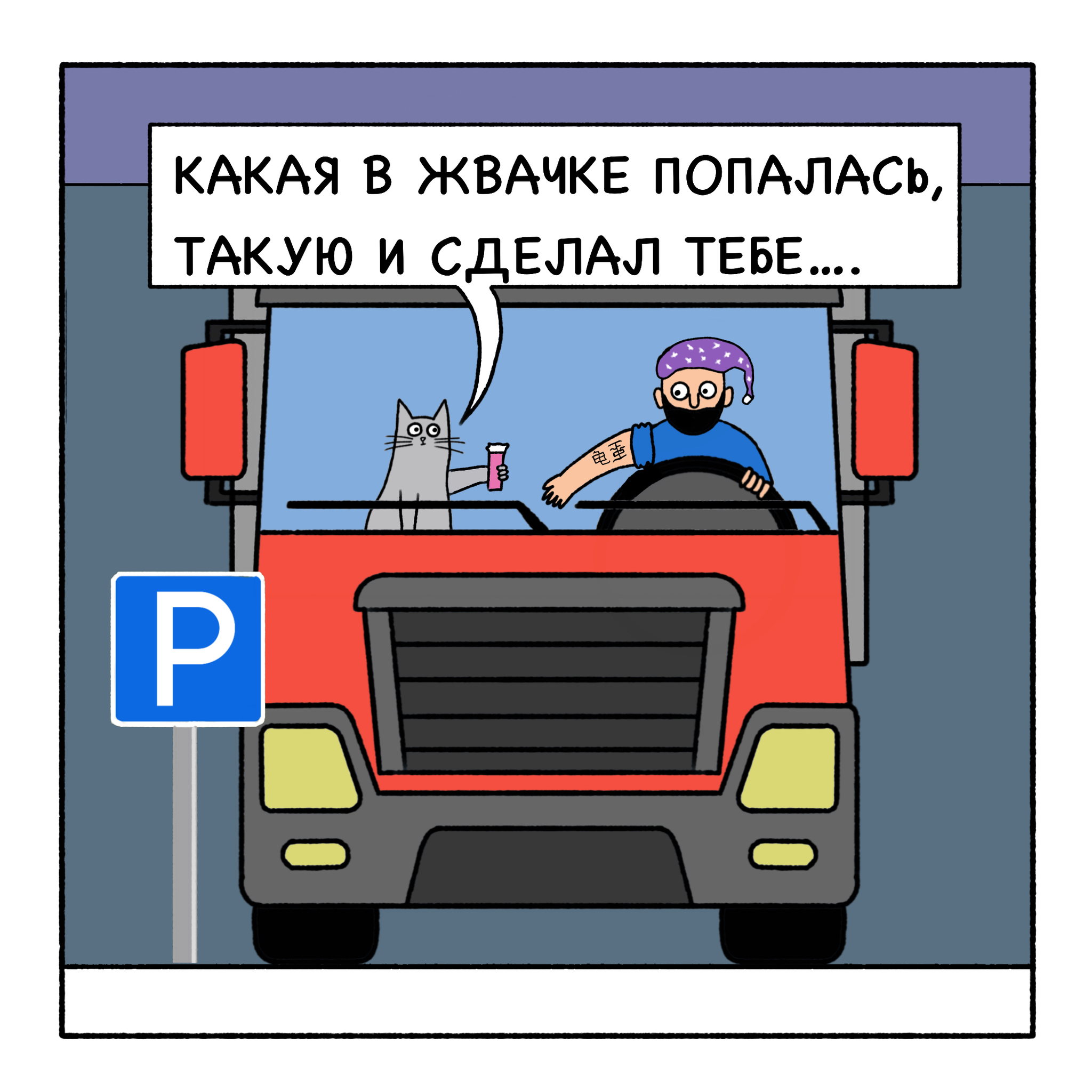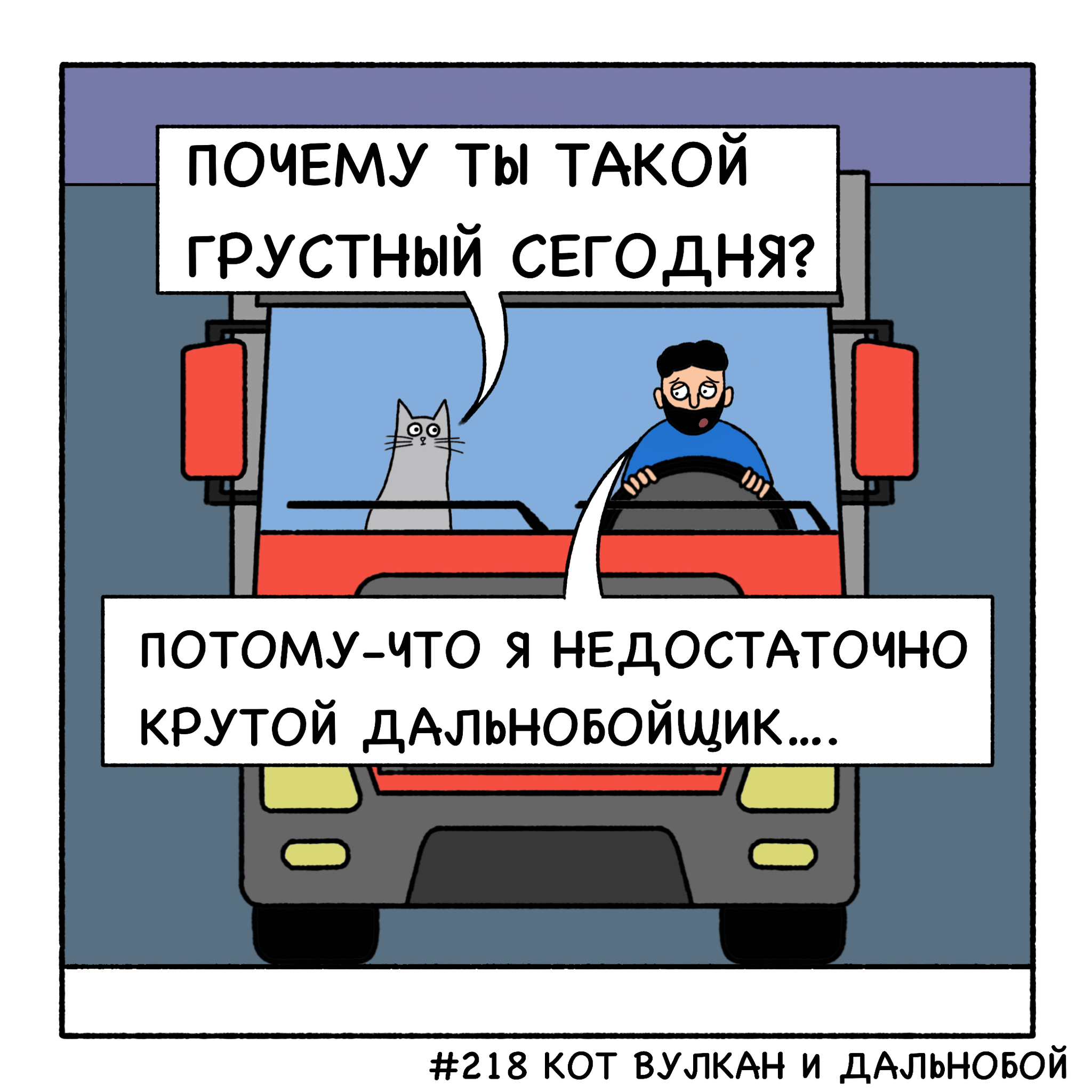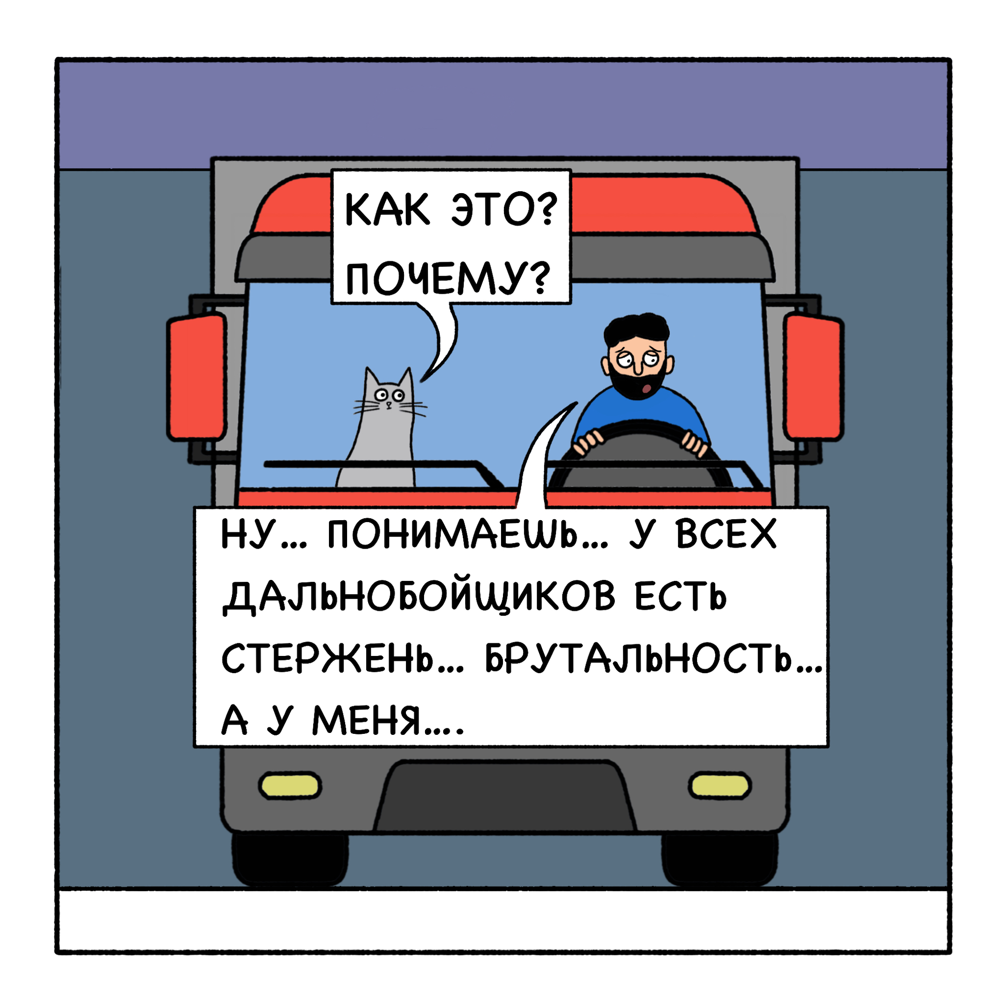 Кот Вулкан и дальнобой едут далеко-далеко. В дороге дальнобоя развлекает очень эрудированный и умный кот Вулкан.