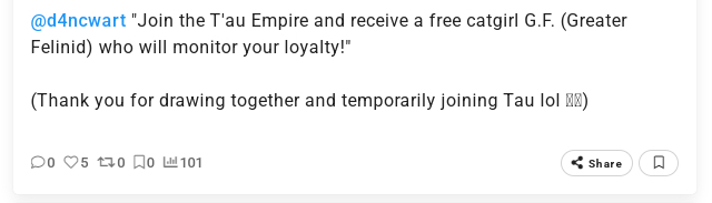 122 user5578389 Warhammer 40k & FB Тау Кота1 Серия Кошачьи страсти 1 год назад Warhammer 40k Wh humor Wh Art Dancwart Tau Фелиниды 5 3 1 Ещё 0